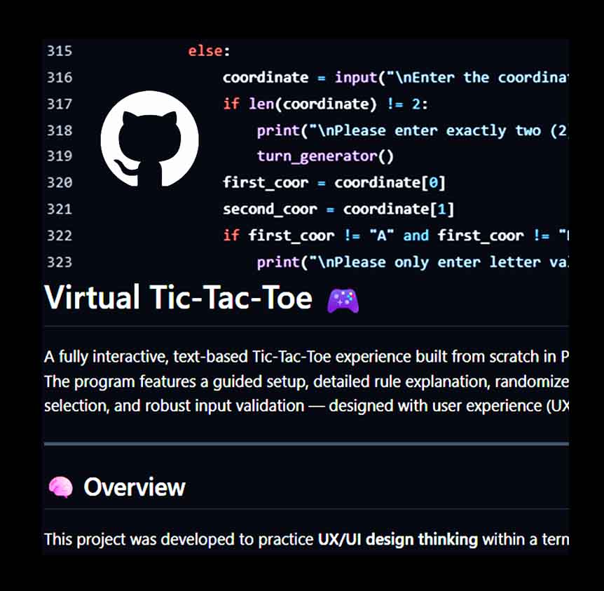A fully interactive, text-based Tic-Tac-Toe experience built from scratch in Python. It features a guided setup, custom symbol selection, and robust input validation — designed with user experience (UX/UI) principles.